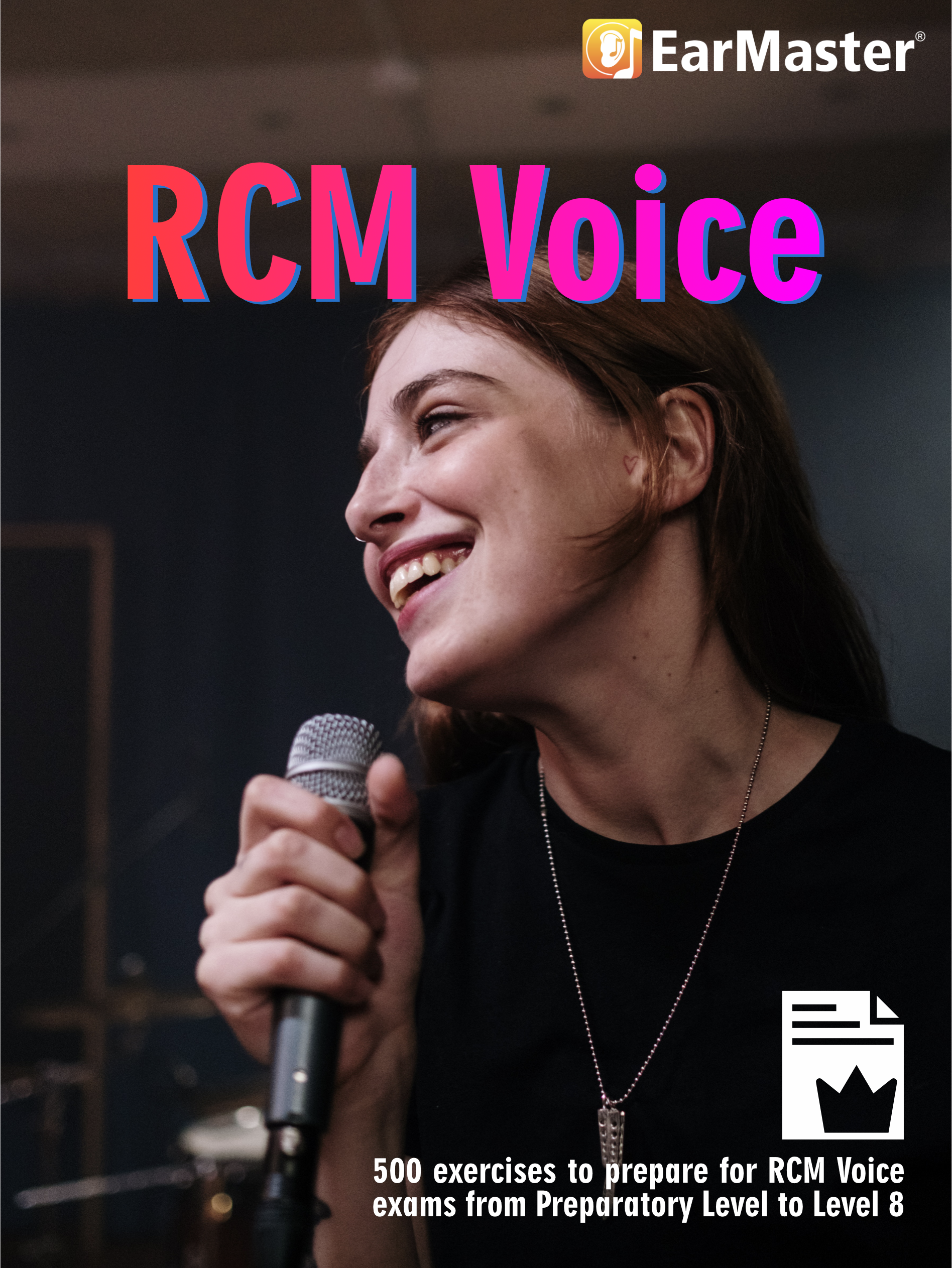 Notice: EarMaster used to sell a course named RCM Voice - Levels 1-6. The exercises in that course followed the 2012 syllabus of the RCM Voice exams. It has now been re-worked and re-launched as Vocal Trainer which you can use with the newest update of EarMaster. This new RCM Voice course is a separate purchase which contains close to 3 times more exercises and is based on the current 2019 syllabus.